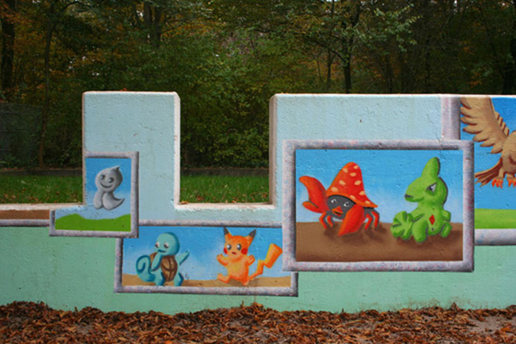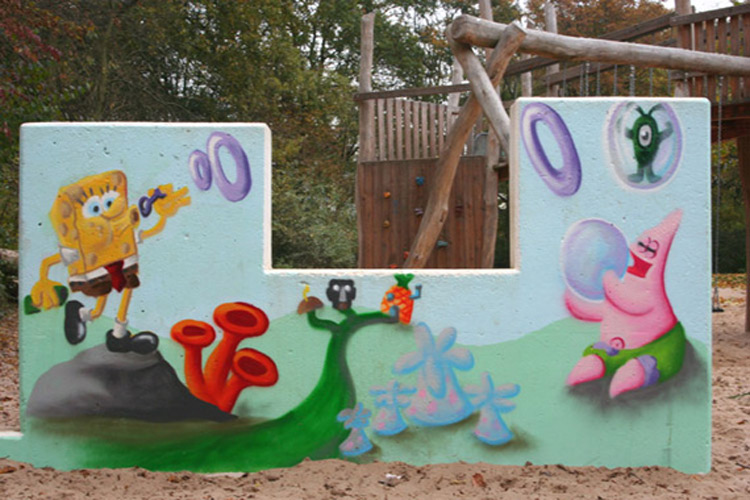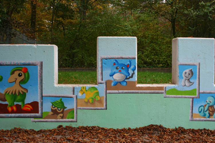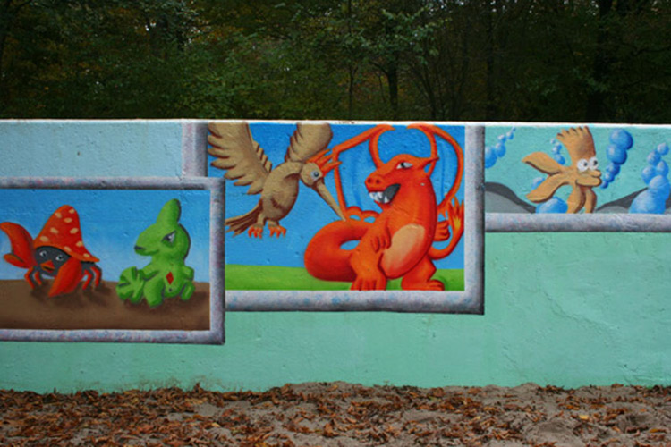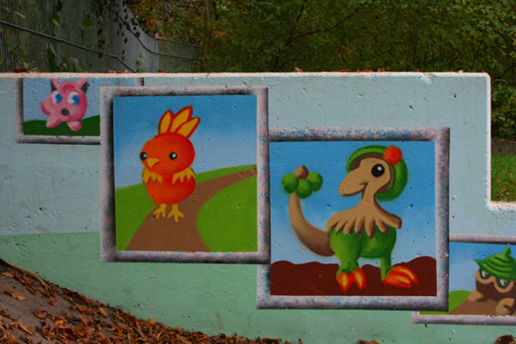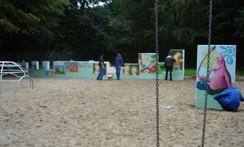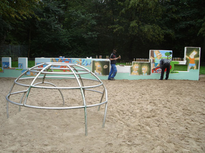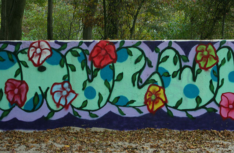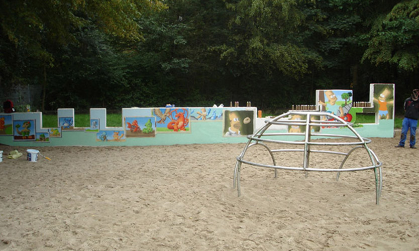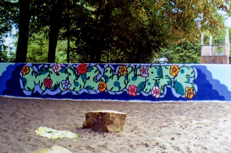 Der Graffitiworkshop und die vollendete Wandgestaltung