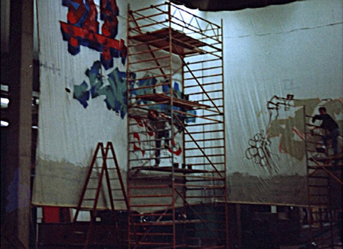 Fernsehbericht von 1989 über Riesenleinwand mit Graffiti für Faschingsparty LiLaBe Hamburg auf You tube