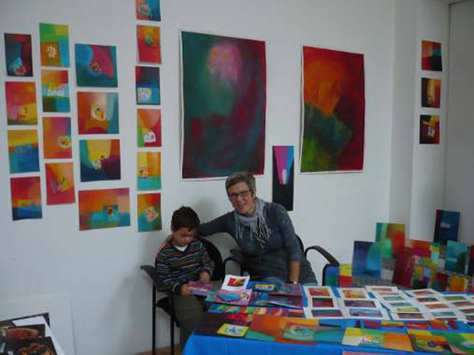 Freies Malen mit Ölfarbe und Lappen auf Papier