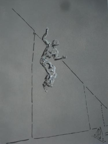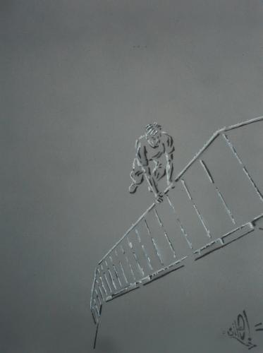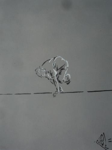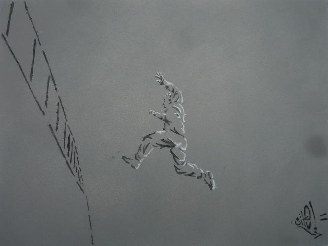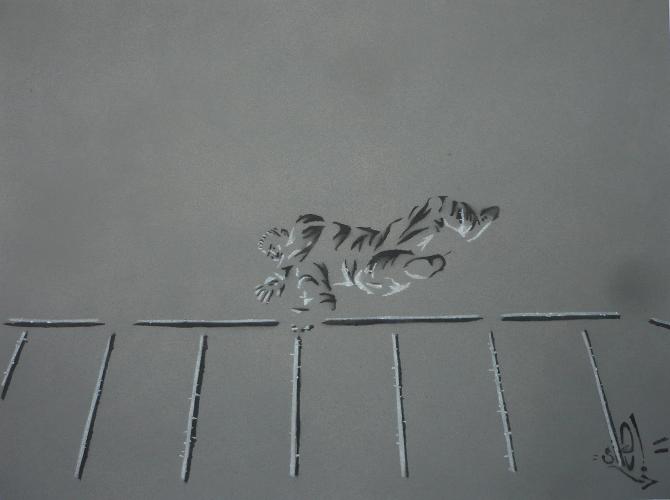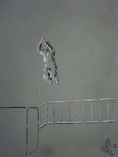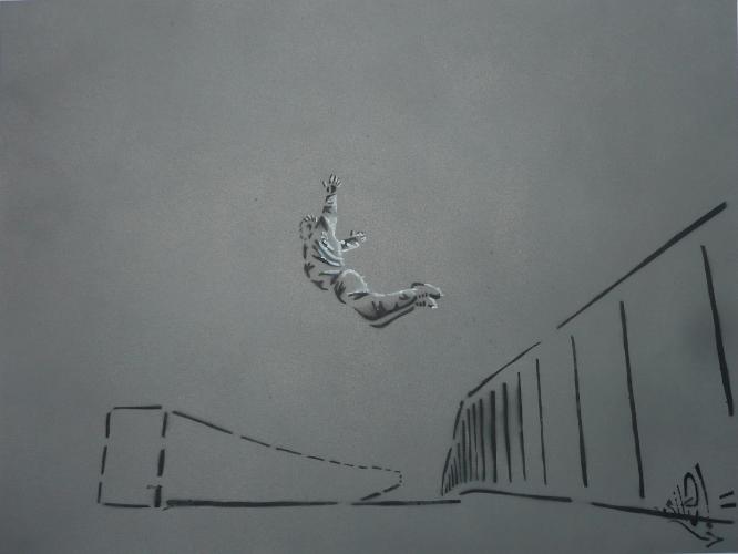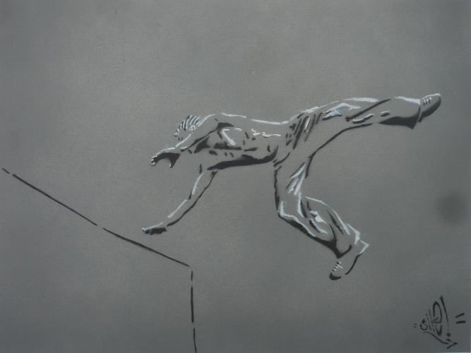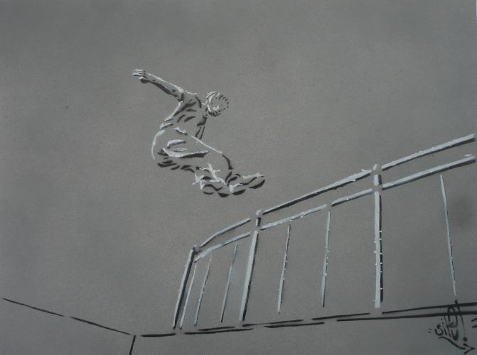 Technik: Acrylfarbe auf Malpappe / stencil auf der Basis der Fotografien von Hendrik Jakowlew von Parcour Bremen