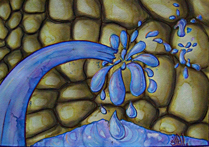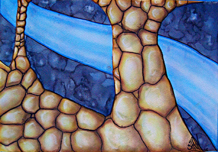 Technik: Airbrusharbeit unter Nutzung von Flüssigmaskenstancel, Guache und Kreide auf Aquarellpapier