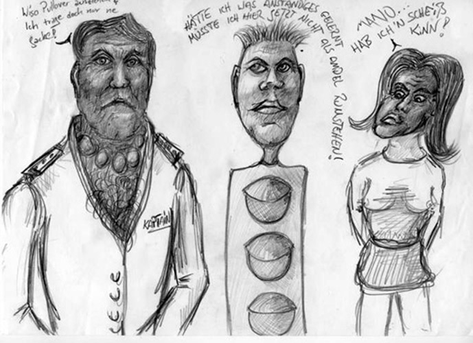 Das Sahnetörtchen protzt nur mit seiner Nahrhaftigkeit, Skizze/Ideenentwurf von Siko Ortner, Bleistift auf Papier, 21cm X 29cm, 2002. Skater, Skizze/Ideenentwurf von Siko Ortner, Bleistift auf Papier, 21cm X 29cm, 2002. PittBull, kein Krieg für Öl, Skizze/Ideenentwurf von Siko Ortner, Bleistift auf Papier, 21cm X 29cm, 2003. Furcht, Skizze/Ideenentwurf von Siko Ortner, Bleistift auf Papier, 21cm X 29cm, 2003. Abhängig, Skizze/Ideenentwurf von Siko Ortner, Bleistift auf Papier, 21cm X 29cm, 2003. Fragend, Skizze/Ideenentwurf von Siko Ortner, Bleistift auf Papier, 21cm X 29cm, 2003. Hoffnung, Skizze/Ideenentwurf von Siko Ortner, Bleistift auf Papier, 21cm X 29cm, 2003. The Limit, Skizze/Ideenentwurf von Siko Ortner, Bleistift auf Papier, 21cm X 29cm, 2003. Alles aus Nichts, Skizze/Ideenentwurf von Siko Ortner, Bleistift auf Papier, 21cm X 29cm, 2003. Gelehrter, Skizze/Ideenentwurf von Siko Ortner, Bleistift auf Papier, 21cm X 29cm, 2003. Verwirrter, Skizze/Ideenentwurf von Siko Ortner, Bleistift auf Papier, 21cm X 29cm, 2003. Na kleiner, Skizze/Ideenentwurf von Siko Ortner, Bleistift auf Papier, 21cm X 29cm, 2003. Fratz in der Tasse, Skizze/Ideenentwurf von Siko Ortner, Bleistift auf Papier, 21cm X 29cm, 2003. Schläger, Skizze/Ideenentwurf von Siko Ortner, Bleistift auf Papier, 21cm X 29cm, 2003. Beware of human being, Skizze/Ideenentwurf von Siko Ortner, Bleistift auf Papier, 21cm X 29cm, 2004. Der Frosch der sich nicht küssen läßt, Skizze/Ideenentwurf von Siko Ortner, Bleistift auf Papier, 21cm X 29cm, 2004. Wenn, Skizze/Ideenentwurf von Siko Ortner, Bleistift auf Papier, 21cm X 29cm, 2004. Engel Bengel, Skizze/Ideenentwurf von Siko Ortner, Bleistift auf Papier, 21cm X 29cm, 2004. So´n Scheiß, Skizze/Ideenentwurf von Siko Ortner, Bleistift auf Papier, 21cm X 29cm, 2004. No Food I, Skizze/Ideenentwurf von Siko Ortner, Bleistift auf Papier, 21cm X 29cm, 2004. No Food II, Skizze/Ideenentwurf von Siko Ortner, Bleistift auf Papier, 21cm X 29cm, 2004. Freiowei, Skizze/Ideenentwurf von Siko Ortner, Bleistift auf Papier, 21cm X 29cm, 2004. DJ Robot, Skizze/Ideenentwurf von Siko Ortner, Bleistift auf Papier, 21cm X 29cm, 2004. Skepsis, Skizze/Ideenentwurf von Siko Ortner, Bleistift auf Papier, 21cm X 29cm, 2004. Gleichmut, Skizze/Ideenentwurf von Siko Ortner, Bleistift auf Papier, 21cm X 29cm, 2004. Arroganz, Skizze/Ideenentwurf von Siko Ortner, Bleistift auf Papier, 21cm X 29cm, 2005. Ape, Skizze/Ideenentwurf von Siko Ortner, Bleistift auf Papier, 21cm X 29cm, 2005. Lion the King, Skizze/Ideenentwurf von Siko Ortner, Bleistift auf Papier, 21cm X 29cm, 2005. Think about sun, Skizze/Ideenentwurf von Siko Ortner, Bleistift auf Papier, 21cm X 29cm, 2005. My brush weights a tonn, Skizze/Ideenentwurf von Siko Ortner, Bleistift auf Papier, 21cm X 29cm, 2005. Entleerung, Skizze/Ideenentwurf von Siko Ortner, Bleistift auf Papier, 21cm X 29cm, 2005. Bingo frame, Skizze/Ideenentwurf von Siko Ortner, Bleistift auf Papier, 21cm X 29cm, 2005. Wasserläufer, Skizze/Ideenentwurf von Siko Ortner, Bleistift auf Papier, 21cm X 29cm, 2005.
